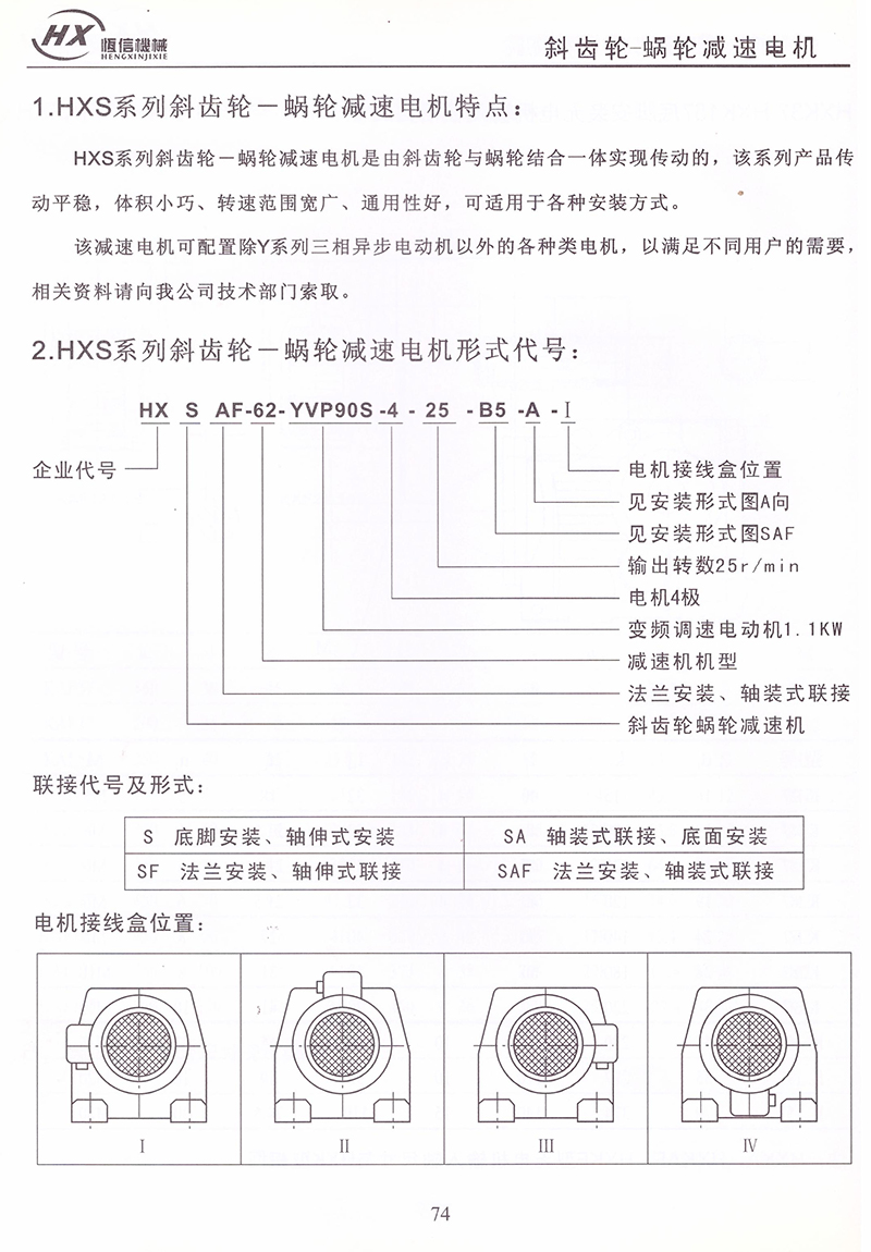 HXS系列斜齿轮蜗轮减速电机技术参数
