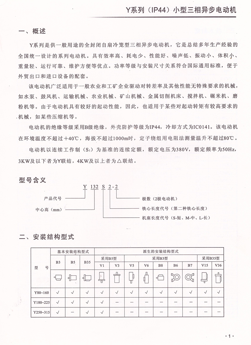 Y系列(IP44)小型三相异步电动机